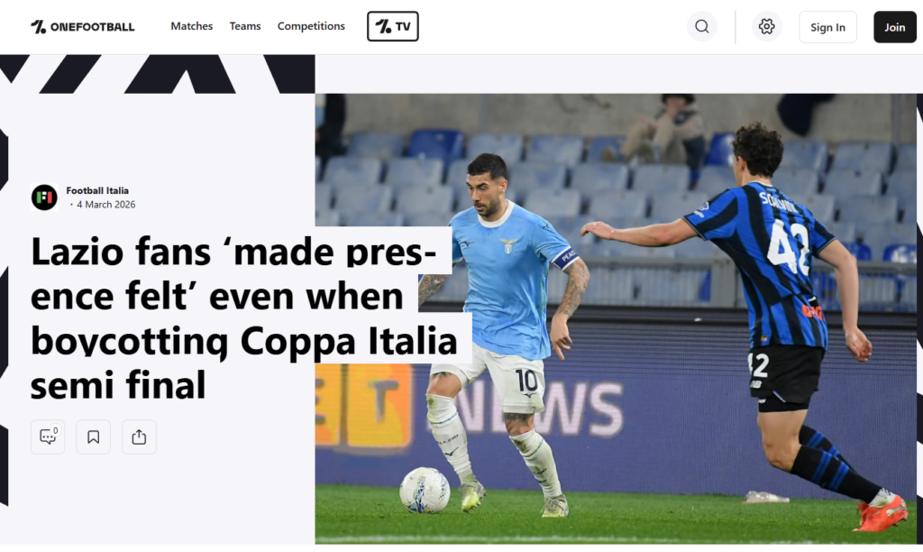 Onefootball: https://onefootball.com/en/news/lazio-fans-made-presence-felt-even-when-boycotting-coppa-italia-semi-final-42505812