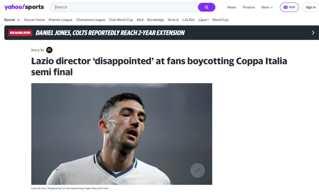 Yahoo Sport: https://ca.sports.yahoo.com/news/lazio-director-disappointed-fans-boycotting-201000679.html