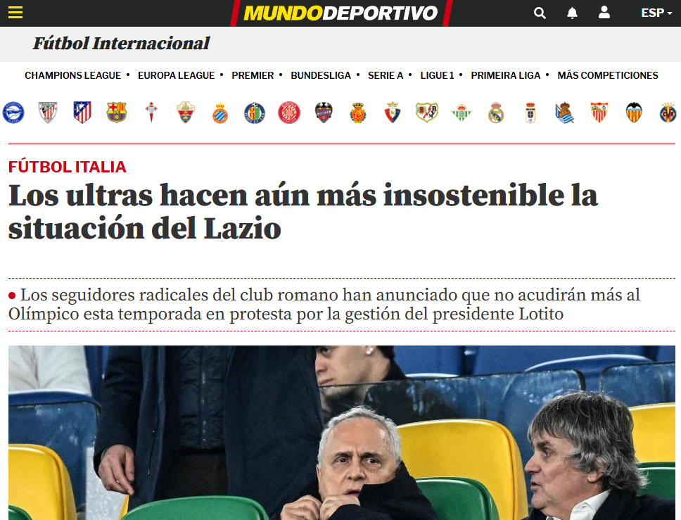 Mundo deportivo: https://www.mundodeportivo.com/futbol/internacional/20260310/1004149630/ultras-aun-insostenible-situacion-lazio.html